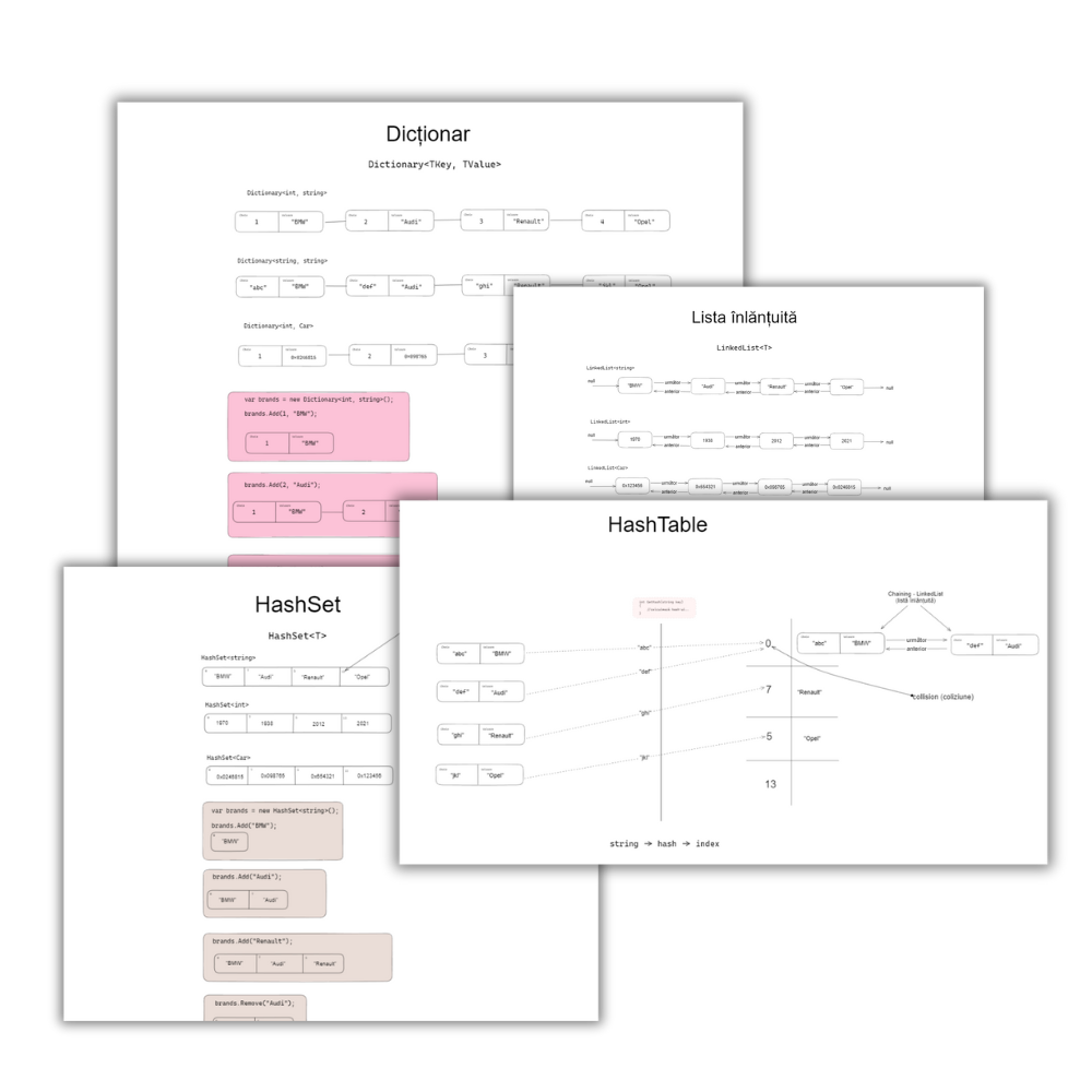 Găsești o serie de lecții despre cele mai importante și utilizate structuri de date din C#, la secținea "Colecții" din curs.